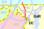Here is a "no nonsense" route between Washington, DC and Thurmont, MD. The southern half of the route tries to use "bike friendlier" roads and side paths through Washington's busy suburbs. As the route progresses, it follows the lightly traveled state highways of northern Maryland's rural countryside. However, this route does require riding with some high speed traffic, so only fairly experienced cyclists should use this route. The route leaves Washinton via the popular Capital Crescent Trail. It then follows the shoulders of Bradely Blvd and Seven Locks Road (two popular bike routes). Between Rockville and Germantown, the route uses a combination of suburban streets and side paths along Great Seneca Hwy, Muddy Branch Rd, and Route 355. Soon after crossing Route 27, the route becomes more rural and more hilly. Route 355 becomes a two lane highway with narrow shoulders (not the best for bicycles, but passable). After passing Hyattstown, MD, the route follows follows Route 75. This is a lightly traveled highway that lacks shoulders in some sections. The main trouble spots are between Route 80 and I-70, and the mile or so before Liberytown, MD. From Libertytown, it is basically a straight shot to Thurmont along Route 550. |